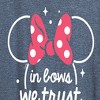 Disney - Minnie Mouse - In Bows We Trust - Women's Short Sleeve Graphic T-Shirt - Add a touch of magic to your wardrobe with this graphic apparel featuring iconic Disney designs. Showcasing beloved characters and classic imagery, each piece combines nostalgic charm with modern style—perfect for Disney fans of all ages. Whether you're headed to the parks or just adding whimsy to your everyday look, these graphics bring the magic to life.