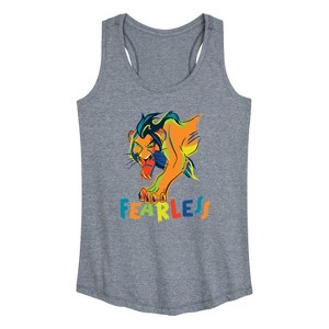 The Lion King - Scar - Fearless - Women's Racerback Tank Top - Add a touch of magic to your wardrobe with this graphic apparel featuring iconic Disney designs. Showcasing beloved characters and classic imagery, each piece combines nostalgic charm with modern style—perfect for Disney fans of all ages. Whether you're headed to the parks or just adding whimsy to your everyday look, these graphics bring the magic to life.