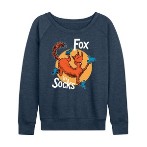 Women's - Dr. Seuss - Fox In Socks Jumping Lightweight French Terry Wide Neck Long Sleeve Graphic Shirt