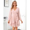 Product Name: Women's Dress Deep V-Neck Long Sleeve Waist Tie Ruffle Mini Swing Skater Dresses Pink L