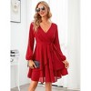 Product Name: Women's Dress Deep V-Neck Long Sleeve Waist Tie Ruffle Mini Swing Skater Dresses Red S