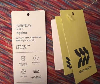 1. Everyday Soft Fabric – All in Motion: is perfect for low-intensity workouts & everyday wear. Features lightweight, high-stretch, & luxe, buttery soft fabric. Lengths come in full length or 7/8 length.