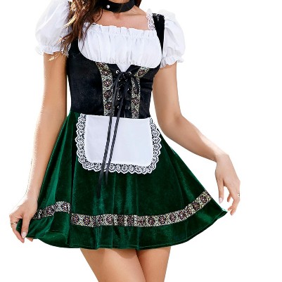 Step into any beer - themed event in style with our Women's Faux 3 - Piece Dress! This dress mimics a 3 - piece set, offering a convenient and fashionable outfit option. Made from soft velvety fabric, it provides a comfortable and luxurious feel. The lace trims and embroidery details add a feminine and charming touch, making you the center of attention. The short - sleeve design with puffed sleeves allows for unrestricted movement, and the flattering fit ensures you look and feel great. Whether it's a beer festival or a costume party, this dress is a must - have. Accessorize it as you like to create a standout look and enjoy the festivities to the fullest!