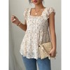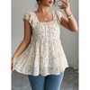 This women's blouse features a delicate floral print, square neck, ruffled short sleeves, a smocked waist, and a flowy hem. Made of 100% polyester, it¡¯s lightweight, soft, and breathable¡ªideal for warm days. The smocked waist adds subtle shape, while the ruffled details bring gentle texture. Perfect for casual outings, brunch, or daytime plans; pairs with jeans, shorts, or skirts.