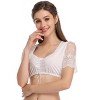 Women's Floral Lace Crop Top - V-Neck Short Sleeve Blouse with Adjustable Drawstring & Elastic Hem
