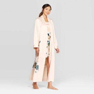 Women's Floral Print Satin Robe - Stars Above™ Cream