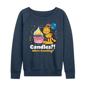 Women's - Garfield - Candles Who's Counting Lightweight French Terry Wide Neck Long Sleeve Graphic Shirt - 1 of 4