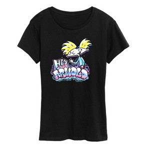 Hey Arnold! - Airbrush Arnold - Women's Short Sleeve Graphic T-Shirt - Rock your style with Hey Arnold! graphic apparel. Featuring Arnold, Helga, and the gang, these designs bring the heart and humor of this beloved animated series about growing up in the big city.