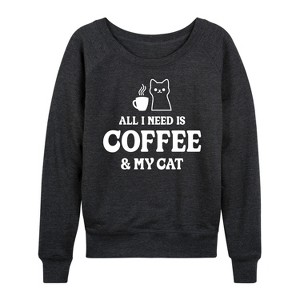 Women's - Instant Message - All I Need Coffee Cat Lightweight French Terry Wide Neck Long Sleeve Graphic Shirt