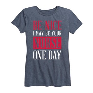Instant Message - Be Nice I May Be Your Nurse One Day - Women's Short Sleeve Graphic T-Shirt - Instant Message is an online specialty fashion retailer for everything from funny to inspiring printed apparel. We offer a range of garments from long sleeve and relaxed fit t-shirts, to lightweight french-terry long sleeve shirts, hoodies and graphic print pullovers. Our products feature fun and trendy graphics that are perfect for any occasion and also make great gifts.