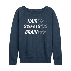Women's - Instant Message - Hair Up Sweats On Brain Off Lightweight French Terry Wide Neck Long Sleeve Graphic Shirt