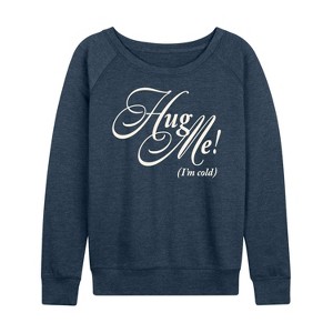 Women's - Instant Message - Hug Me I'm Cold Lightweight French Terry Wide Neck Long Sleeve Graphic Shirt - 1 of 4
