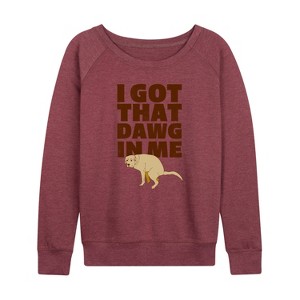 Women's - Instant Message - I Got That Dog In Me; Dog Pooping Lightweight French Terry Wide Neck Long Sleeve Graphic Shirt