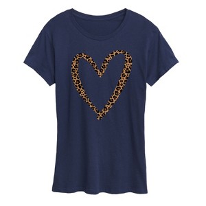 Women's - Instant Message - Leopard Print Heart Outline Short Sleeve Graphic T-Shirt