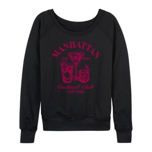 Women's - Instant Message - Manhattan Cocktail Club Lightweight French Terry Wide Neck Long Sleeve Graphic Shirt - 1 of 4