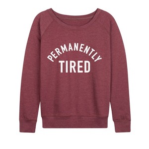 Women's - Instant Message - Permanently Tired Lightweight French Terry Wide Neck Long Sleeve Graphic Shirt - 1 of 4