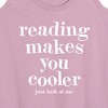 Instant Message - Reading Makes You Cooler - Women's Racerback Tank Top - Instant Message is an online specialty fashion retailer for everything from funny to inspiring printed apparel. We offer a range of garments from long sleeve and relaxed fit t-shirts, to lightweight french-terry long sleeve shirts, hoodies and graphic print pullovers. Our products feature fun and trendy graphics that are perfect for any occasion and also make great gifts.