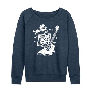 Women's - Instant Message - Skeleton Guitar Lightweight French Terry Wide Neck Long Sleeve Graphic Shirt