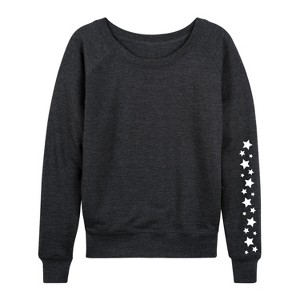 Women's - Instant Message - Stars Lightweight French Terry Wide Neck Long Sleeve Graphic Shirt