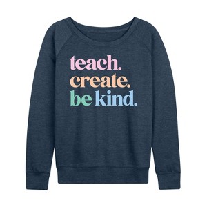 Women's - Instant Message - Teach Create Be Kind Lightweight French Terry Wide Neck Long Sleeve Graphic Shirt
