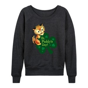 Women's - Instant Message - Vintage St. Paddy's Day Cat Lightweight French Terry Wide Neck Long Sleeve Graphic Shirt