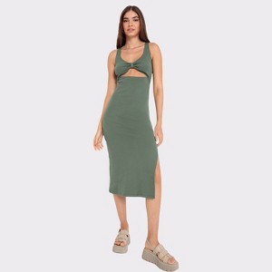 Women's Knot Detail Cut Out Dress - LSCN by LASCANA - Olive Solid 6