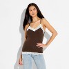 Women's Ribbed Lace Trim Cami - Wild Fable™ Brown XXS