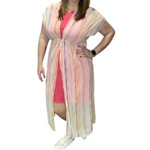 A comfy-all-day coverup that works just as good at dinner as it does by the pool.Short sleeves. Waist tie. Striped. 100% Polyester. Machine wash cold.