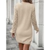 Women's Long Sleeve Crochet Hollow Sweater Dress V Neck Mini Fitted Knit Dress Dressy Casual Wedding Guest Dresses Off-white XL