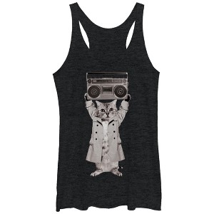 Women's Lost Gods Trench Coat Boombox Cat Racerback Tank Top - 1 of 4