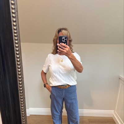 Super cute fit on my 5’9” 136 lb frame. I was really happy to find pants that are long enough! They’re a lightweight fabric that will be great when we get warmer. I wish there were more colors to choose from.