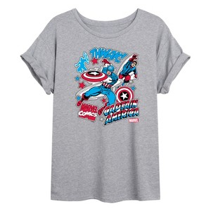 Women's - Marvel - Captain America Comic Book Stickers Oversized Graphic T-Shirt - 2 of 4Women's - Marvel - Captain America Comic Book Stickers Oversized Graphic T-Shirt - 3 of 4Women's - Marvel - Captain America Comic Book Stickers Oversized Graphic T-Shirt - 4 of 4