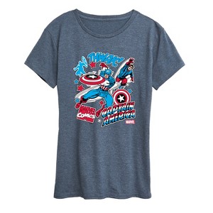 Marvel Captain America - Comic Book Stickers -Women's Short Sleeve Graphic T-Shirt - Introducing our collection of officially licensed Marvel graphic apparel, where legendary superheroes and iconic moments from the Marvel Universe come to life on high-quality, comfortable clothing. Each design is carefully crafted with vibrant, detailed artwork featuring beloved characters like Spider-Man, Iron Man, Captain America, and the Avengers. From bold graphic tees to stylish hoodies and accessories, our apparel celebrates the thrilling world of Marvel with cutting-edge prints, premium fabrics, and a perfect fit for fans of all ages.