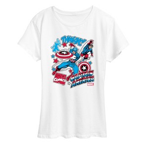 Women's - Marvel - Captain America Comic Book Stickers Short Sleeve Graphic T-Shirt