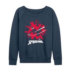 Women's - Marvel - Spider-Man Miles Skyline Lightweight French Terry Wide Neck Long Sleeve Graphic Shirt - 1 of 4
