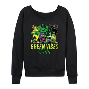 Women's - Marvel - St Patrick's Day Incedibly Lucky Lightweight French Terry Wide Neck Long Sleeve Graphic Shirt - 1 of 4