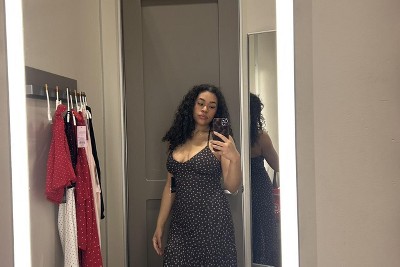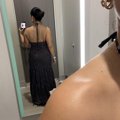 Such a beautiful flowy dress, I could not leave the store without it! It feels so sexy and comfy at the same time, I’m loving the pattern. I’m 5’5 36DD around 155 lbs and a size small felt perfect.