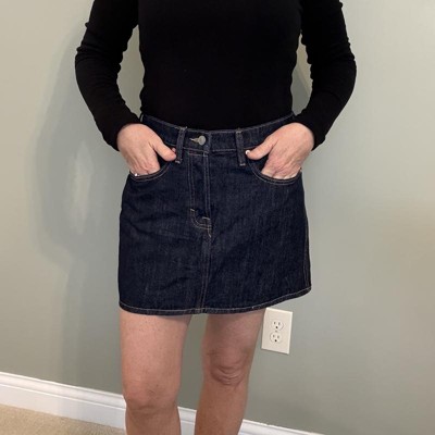 A: Hello Erin - Thank you for your Question about Women's Mid-Rise Denim Mini Skirt. See skirt lengths below by size. This measurement is the total length measured at center back including the waistband. Center back skirt length by size: 0: 15.375” 2: 15.5” 4: 15.625” 6: 15.75” 8: 15.875” 10: 16” 12: 16.125” 14: 16.25” 16: 16.375 17: 17.5” 18: 18” 20: 18.375” 22: 18.75” 24: 19.125” 26: 19.5” 28: 19.875”. I hope this helps - Sam