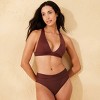 Women's Mid-Rise Shirred Waistband Bikini Bottom - Shade & Shore™ Brown XS: Solid Swimwear, Pull-On Style, Medium Coverage