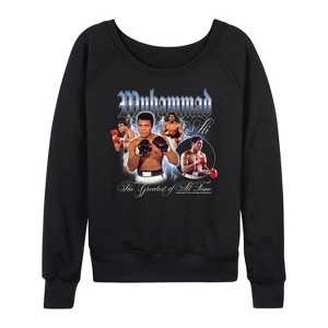 Women's - Muhammad Ali - Collage -Women's French Terry Long Sleeve Shirt Lightweight French Terry Wide Neck Long Sleeve Graphic Shirt - 1 of 4
