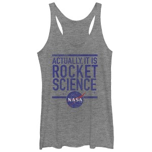 If you're all about that space then you're going to love the NASA It is Rocket Science Heather Gray Racerback Tank Top! A lightly distressed print on the front of this awesome gray NASA shirt reads "Actually, it is Rocket Science" above the NASA logo.