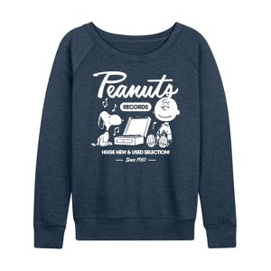 Women's - Peanuts - Charlie Brown Records Lightweight French Terry Wide Neck Long Sleeve Graphic Shirt - 1 of 4