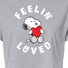 Peanuts - Feelin Loved - Juniors Cropped Graphic T-Shirt - From the best-loved comic strip in history comes officially licensed PEANUTS apparel for fans everywhere. Show your love for Charlie Brown, Snoopy, Woodstock, Lucy, Linus, Pigpen and the whole gang. Copyright Peanuts.