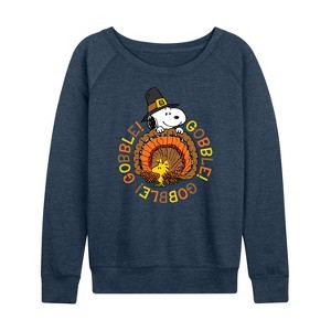 Peanuts - Gobble Gobble-Adult Women's Lightweight French Terry Long Sleeve Shirt - From the best-loved comic strip in history comes officially licensed PEANUTS apparel for fans everywhere. Show your love for Charlie Brown, Snoopy, Woodstock, Lucy, Linus, Pigpen and the whole gang. Copyright Peanuts.