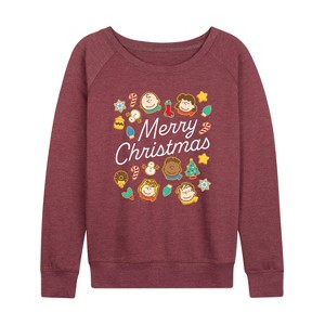 Women's - Peanuts - Merry Christmas Cookies Lightweight French Terry Wide Neck Long Sleeve Graphic Shirt - 1 of 4