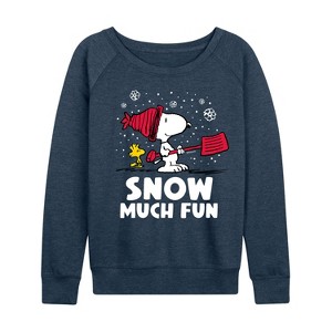 Women's - Peanuts - Snoopy Winter Fun Lightweight French Terry Wide Neck Long Sleeve Graphic Shirt - 1 of 4