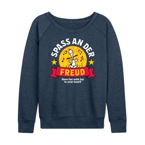 Women's - Peanuts - Snoopy Spass An Der Freud Lightweight French Terry Wide Neck Long Sleeve Graphic Shirt - 1 of 4