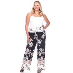 Product Name: Women's Plus Size Floral Paisley Printed Palazzo Pants Black/White 1X - White Mark
