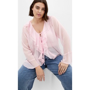 Women's Plus Size Luscious Sheer Ruffles Top - pout pink | CITY CHIC - 1 of 4