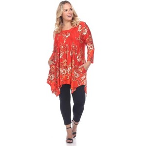 Product Name: Women's Plus Size Paisley Scoop Neck Tunic Top with Pockets Red 1X - White Mark